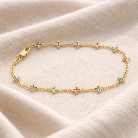 Multicolor Cross Link Gold Filled Anklet