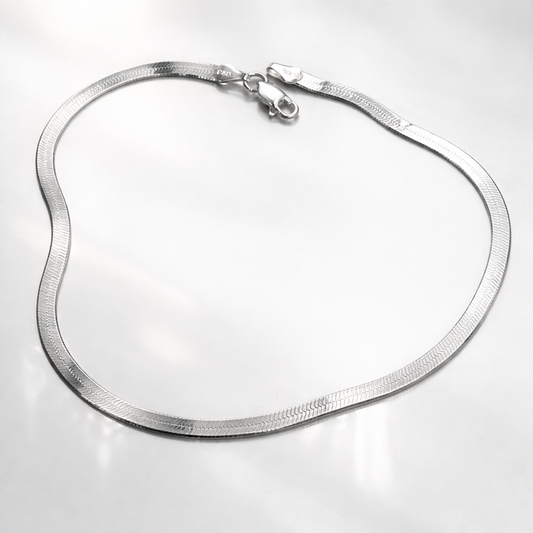 Herringbone Link 925 Sterling Silver Anklet